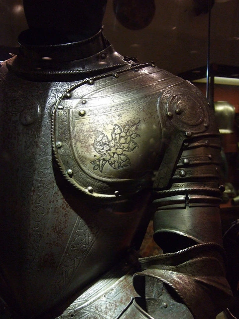 Die typische Ritterrüstung bestand im Hochmittelalter aus einer vollständigen Kettenpanzerung mit Helm und Schild. Im Laufe des 14. Jh. entwickelte sich dann der vollständige Plattenpanzer für den geharnischten Ritter.